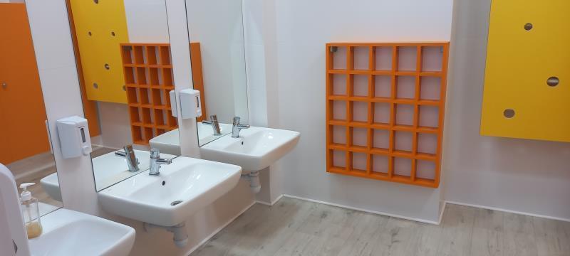 - 6 sal dydaktycznych z przylegającymi łazienkami do każdej z sal (brodzik w dwóch łazienkach dla najmłodszych dzieci),