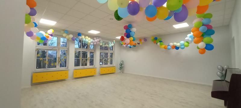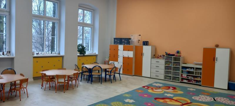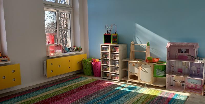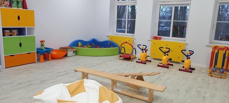 - W budynku przedszkola zaadaptowano pomieszczenia, m.in.:
