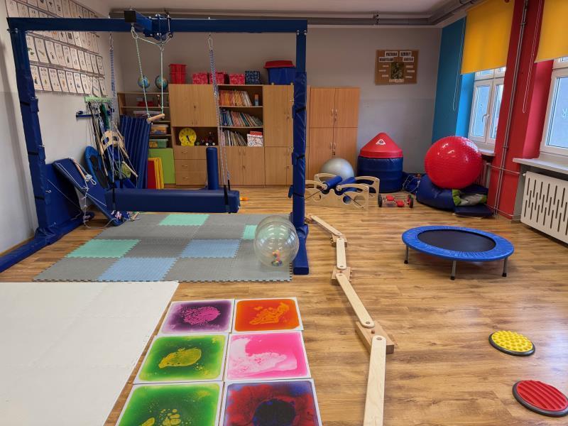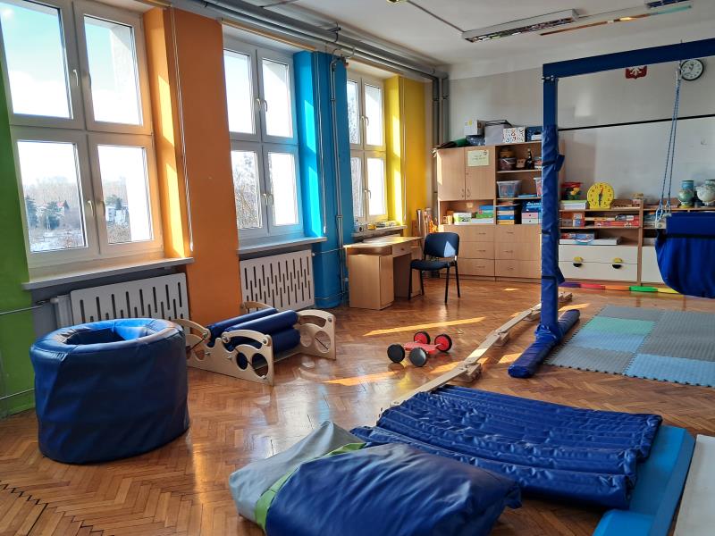 Do dyspozycji dzieci pozostaje duża sala gimnastyczna oraz sala rytmiczna z lustrami, gdzie odbywają się zajęcia ruchowe, taneczne i muzyczne wspierające rozwój sprawności fizycznej i koordynacji. Przedszkolaki mogą korzystać także z biblioteki z bogatym księgozbiorem i przytulnym kącikiem czytelniczym, który rozwija zainteresowania czytelnicze i wyobraźnię.