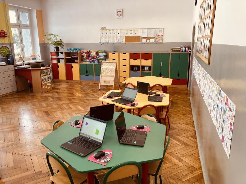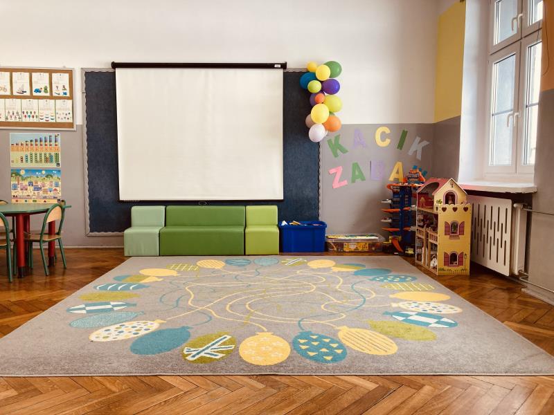 Sześciolatki korzystają z przestronnej, jasnej sali przedszkolnej wyposażonej w nowoczesne pomoce dydaktyczne oraz urządzenia multimedialne, które wspierają rozwój kompetencji językowych, matematycznych i społecznych. Sala jest dostosowana do wieku dzieci – znajdują się w niej kąciki tematyczne, miejsce do zabaw konstrukcyjnych, plastycznych, edukacyjnych oraz przestrzeń do odpoczynku.